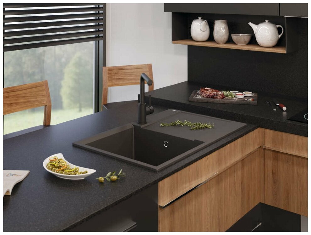 - Помимо гранита, в состав материала входит молотый кварц мельчайших размеров, которому характерны непревзойденная прочность и устойчивость к природным и химическим воздействиям. Свойства данного компонента вместе с долговечностью гранита обеспечивают мойке прочность и делают её устойчивой к любым механическим повреждениям: деформациям, сколам;