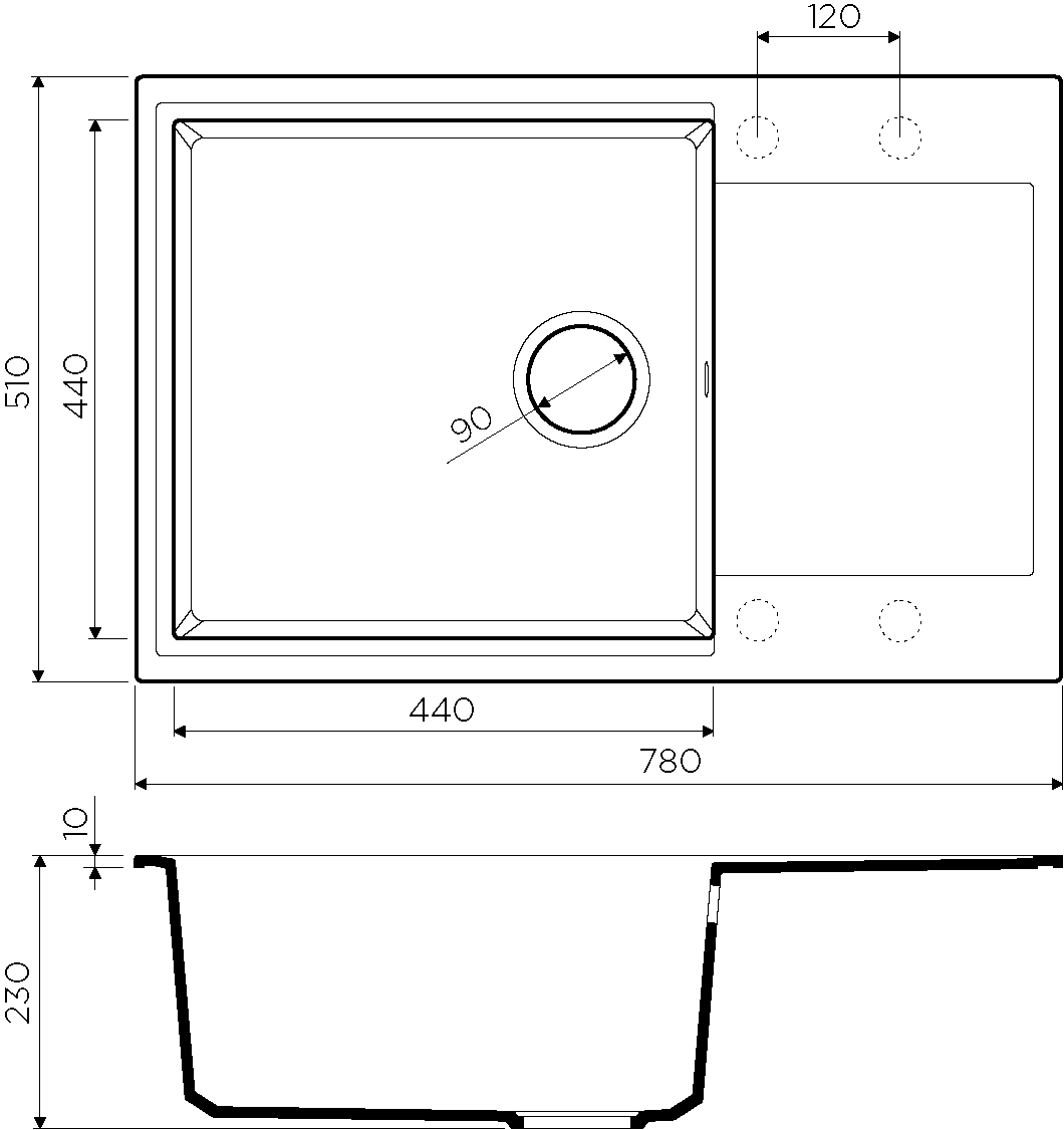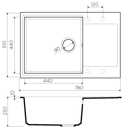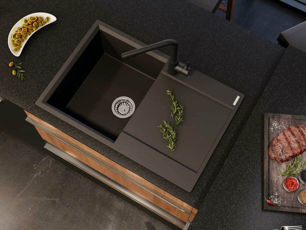 - Помимо гранита, в состав материала входит молотый кварц мельчайших размеров, которому характерны непревзойденная прочность и устойчивость к природным и химическим воздействиям. Свойства данного компонента вместе с долговечностью гранита обеспечивают мойке прочность и делают её устойчивой к любым механическим повреждениям: деформациям, сколам;