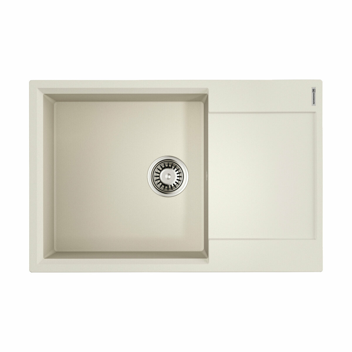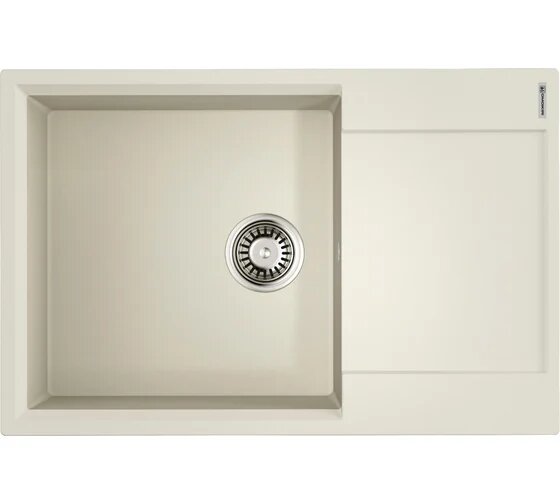 - Кухонная мойка изготовлена из матриала «Artgranit», технология производства которого заключается в том, что частицы кварца, гранита и прочного связующего полимера нового поколения, свойства которого похожи на акриловую смолу, соединяют вместе и помещают в форму. После застывания получается готовая мойка;