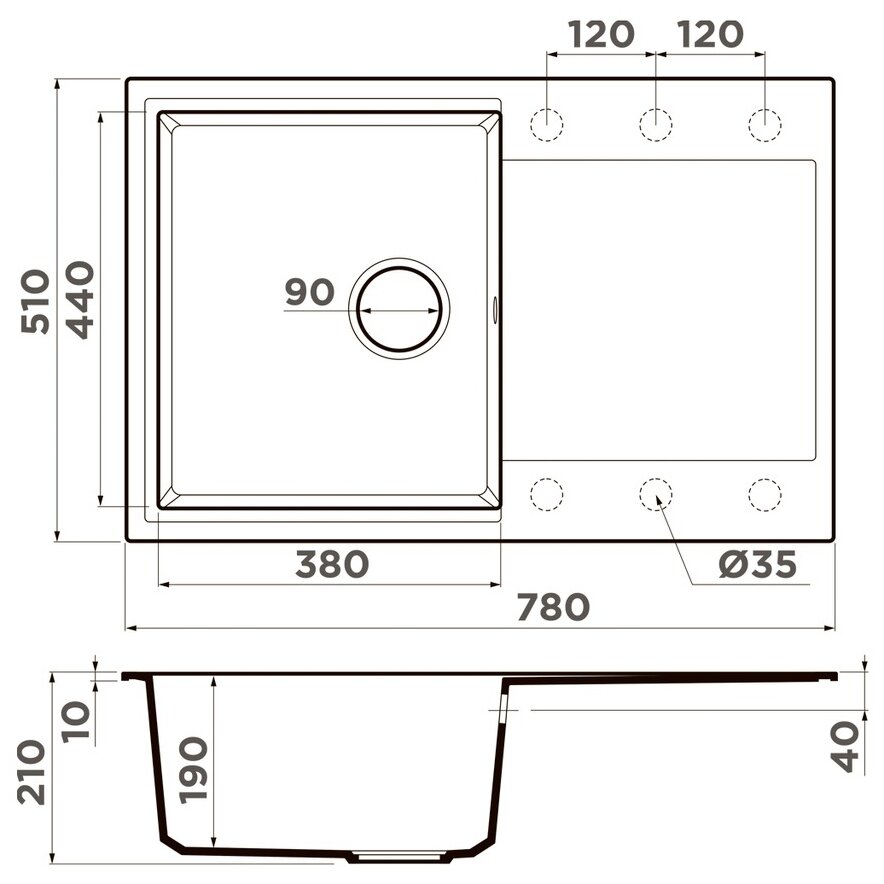 - Помимо гранита, в состав материала входит молотый кварц мельчайших размеров, которому характерны непревзойденная прочность и устойчивость к природным и химическим воздействиям. Свойства данного компонента вместе с долговечностью гранита обеспечивают мойке прочность и делают её устойчивой к любым механическим повреждениям: деформациям, сколам;