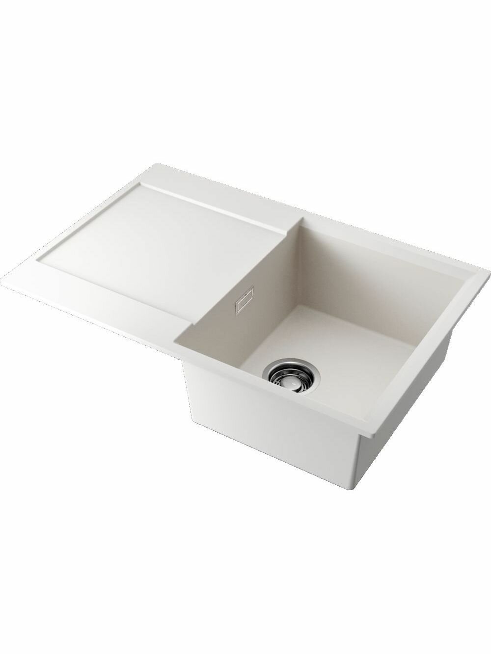 - Кухонная мойка изготовлена из матриала «Artgranit», технология производства которого заключается в том, что частицы кварца, гранита и прочного связующего полимера нового поколения, свойства которого похожи на акриловую смолу, соединяют вместе и помещают в форму. После застывания получается готовая мойка;