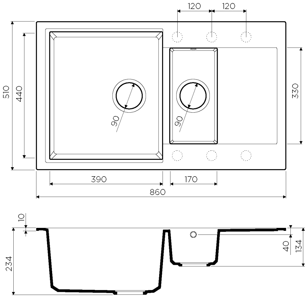 дополнительная чаша, дополнительная чаша,отверстие под смеситель,сливная арматура,клапан-автомат, клапан-автомат, отверстие под смеситель, сливная арматура