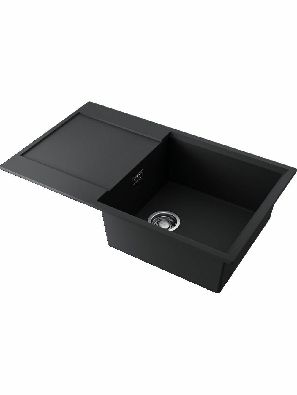 - Кухонная мойка изготовлена из матриала «Artgranit», технология производства которого заключается в том, что частицы кварца, гранита и прочного связующего полимера нового поколения, свойства которого похожи на акриловую смолу, соединяют вместе и помещают в форму. После застывания получается готовая мойка;
