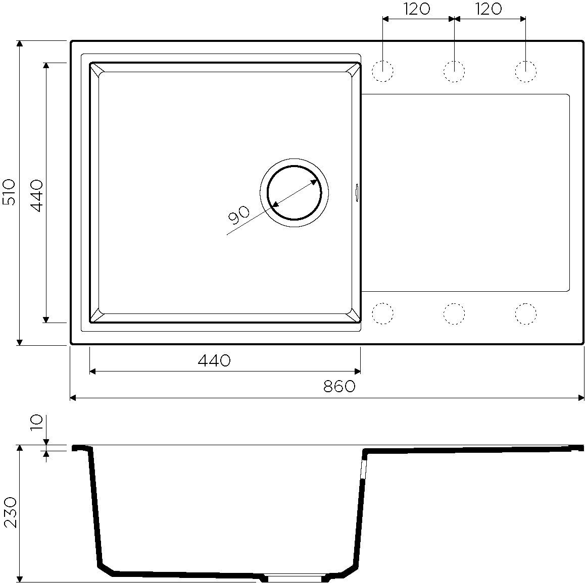 - Помимо гранита, в состав материала входит молотый кварц мельчайших размеров, которому характерны непревзойденная прочность и устойчивость к природным и химическим воздействиям. Свойства данного компонента вместе с долговечностью гранита обеспечивают мойке прочность и делают её устойчивой к любым механическим повреждениям: деформациям, сколам;