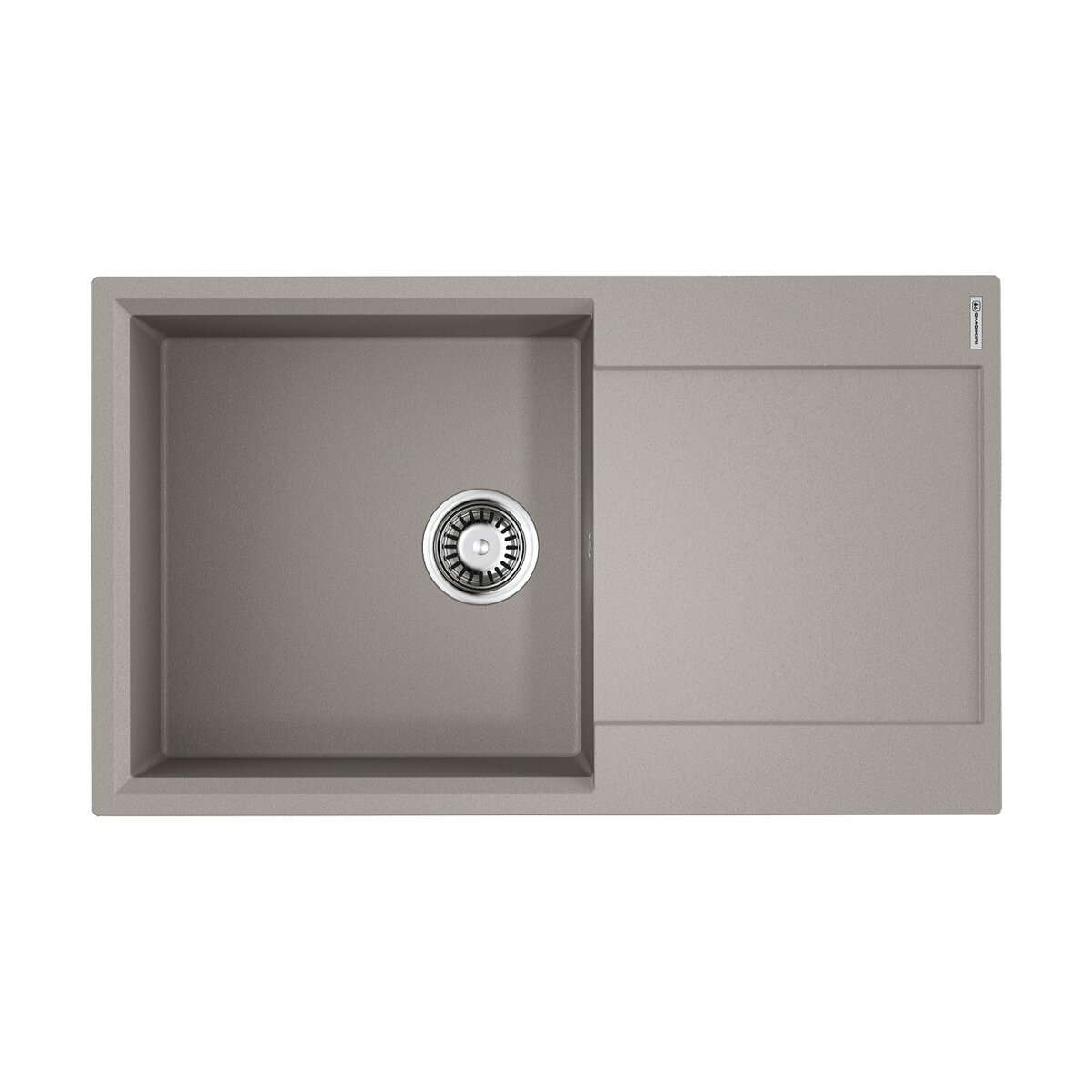 - Кухонная мойка изготовлена из матриала «Artgranit», технология производства которого заключается в том, что частицы кварца, гранита и прочного связующего полимера нового поколения, свойства которого похожи на акриловую смолу, соединяют вместе и помещают в форму. После застывания получается готовая мойка;