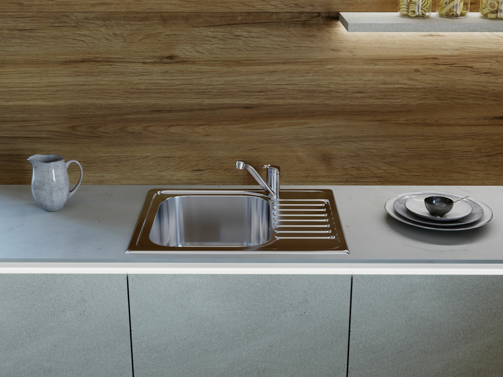 - Кухонная мойка изготовлена из высококачественной хромоникелевой нержавеющей стали SUS304. Она содержит 18% хрома и 8% никеля, что обеспечивает её максимальную защиту от коррозии;