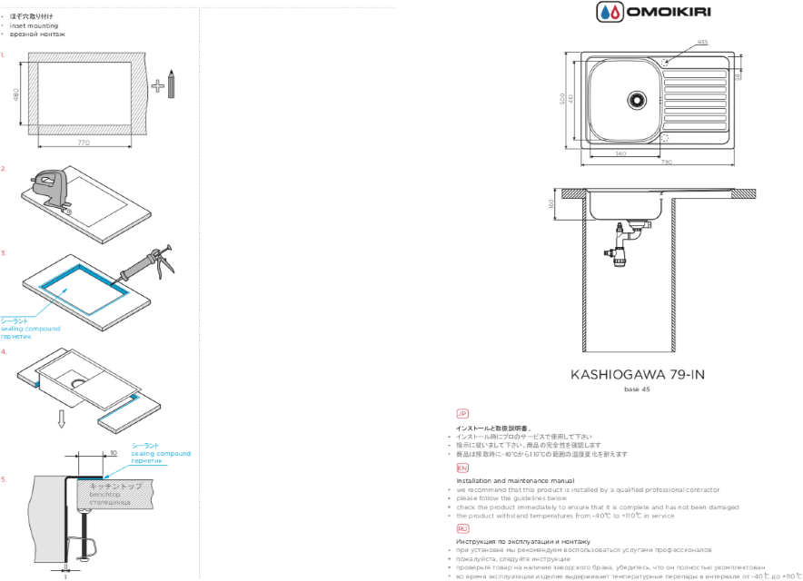 Скачать документы для Мойка Omoikiri Kashiogawa 79-IN нержавеющая сталь/нержавеющая сталь NEW 4993452