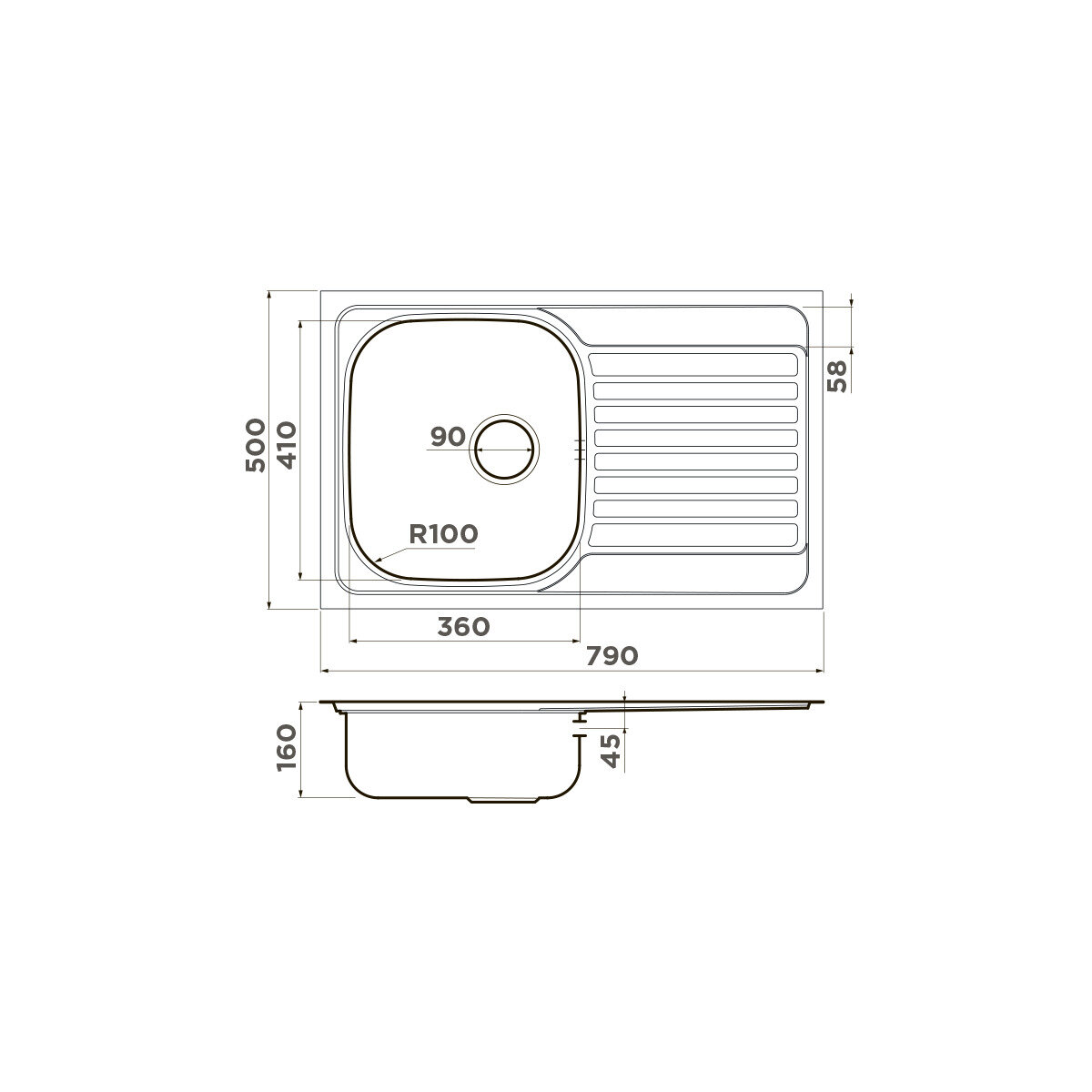 - Кухонная мойка изготовлена из высококачественной хромоникелевой нержавеющей стали SUS304. Она содержит 18% хрома и 8% никеля, что обеспечивает её максимальную защиту от коррозии;