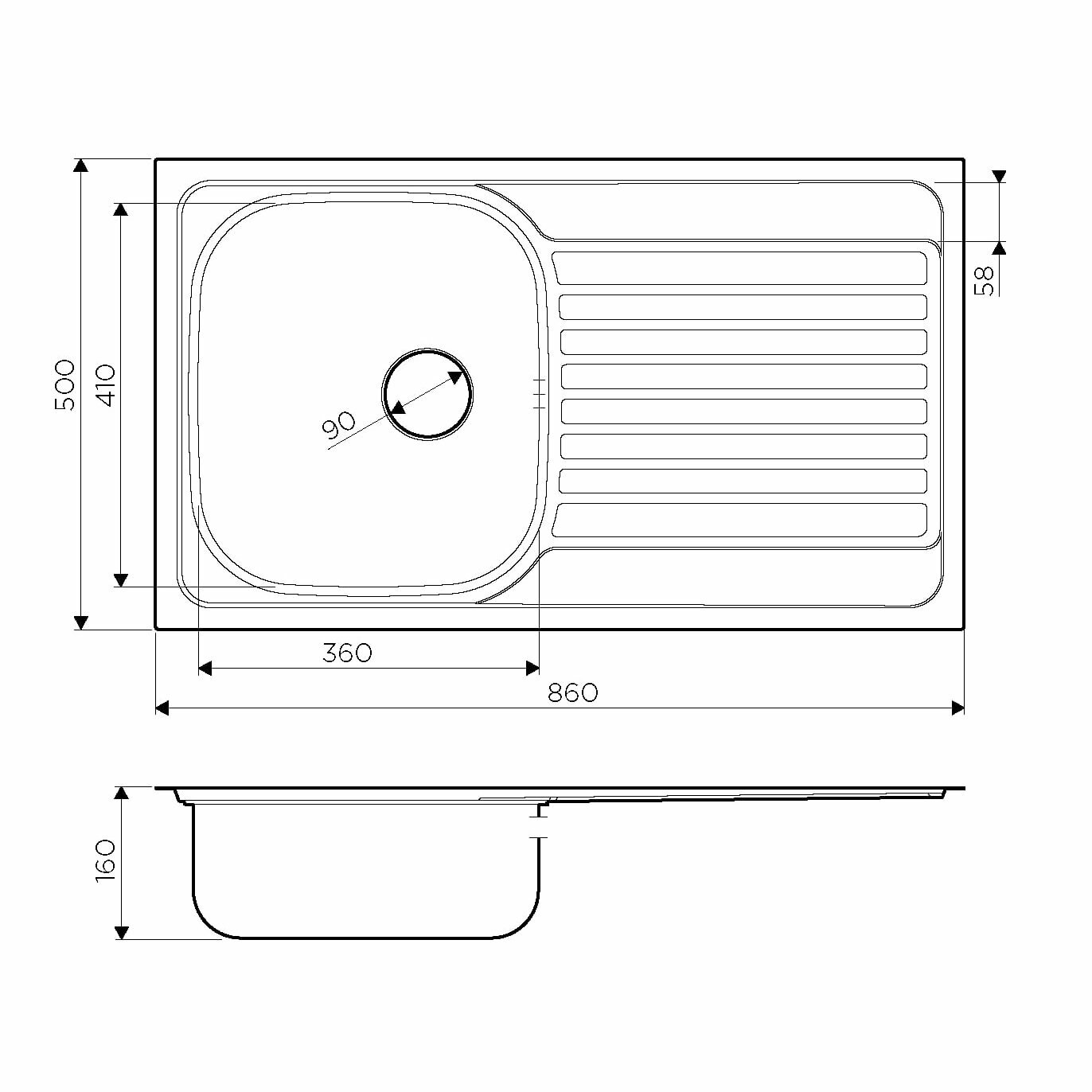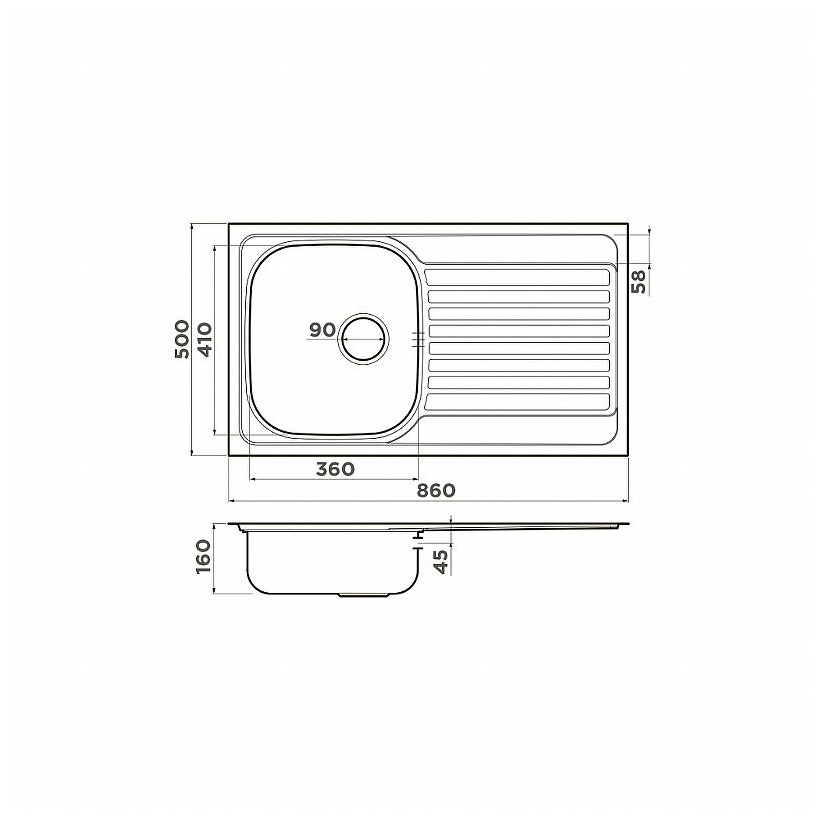 - Кухонная мойка изготовлена из высококачественной хромоникелевой нержавеющей стали SUS304. Она содержит 18% хрома и 8% никеля, что обеспечивает её максимальную защиту от коррозии;