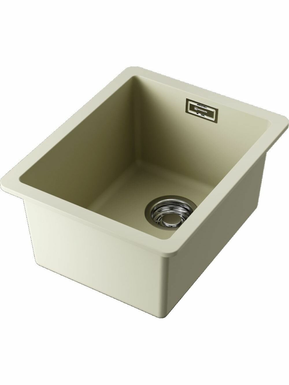 - Кухонная мойка изготовлена из матриала «Artgranit», технология производства которого заключается в том, что частицы кварца, гранита и прочного связующего полимера нового поколения, свойства которого похожи на акриловую смолу, соединяют вместе и помещают в форму. После застывания получается готовая мойка;
