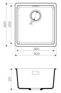 - Кухонная мойка изготовлена из матриала «Artgranit», технология производства которого заключается в том, что частицы кварца, гранита и прочного связующего полимера нового поколения, свойства которого похожи на акриловую смолу, соединяют вместе и помещают в форму. После застывания получается готовая мойка;