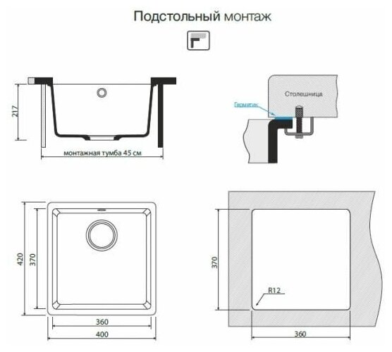- Материал «Artgranit» выдерживает высокие температуры до 280°С (но не стоит ставить на поверхность мойки горячие сковородки и кастрюли, т.к их температура может достигать 500°С).