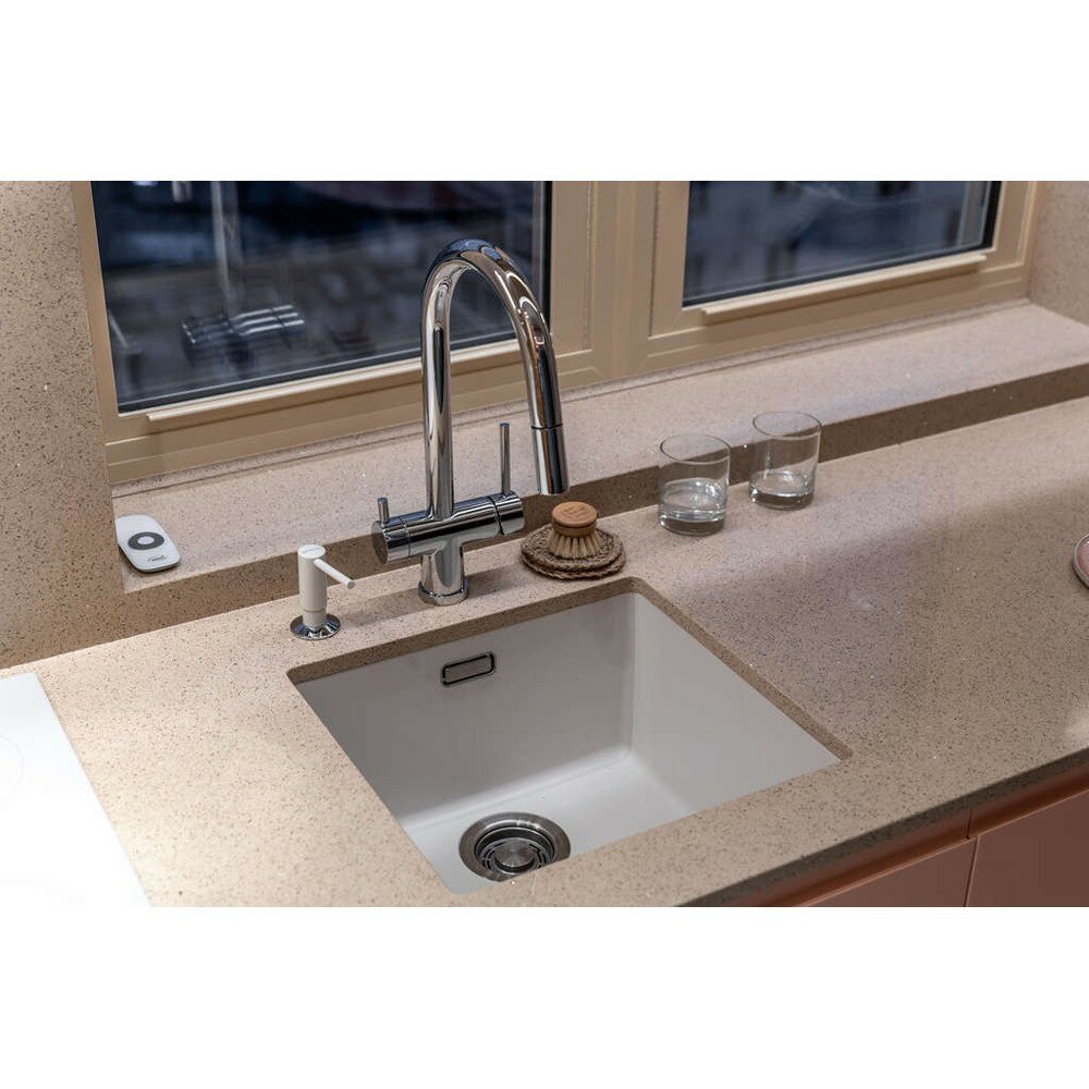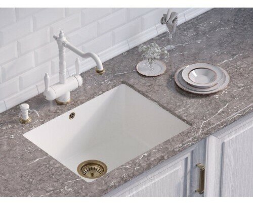 - Помимо гранита, в состав материала входит молотый кварц мельчайших размеров, которому характерны непревзойденная прочность и устойчивость к природным и химическим воздействиям. Свойства данного компонента вместе с долговечностью гранита обеспечивают мойке прочность и делают её устойчивой к любым механическим повреждениям: деформациям, сколам;