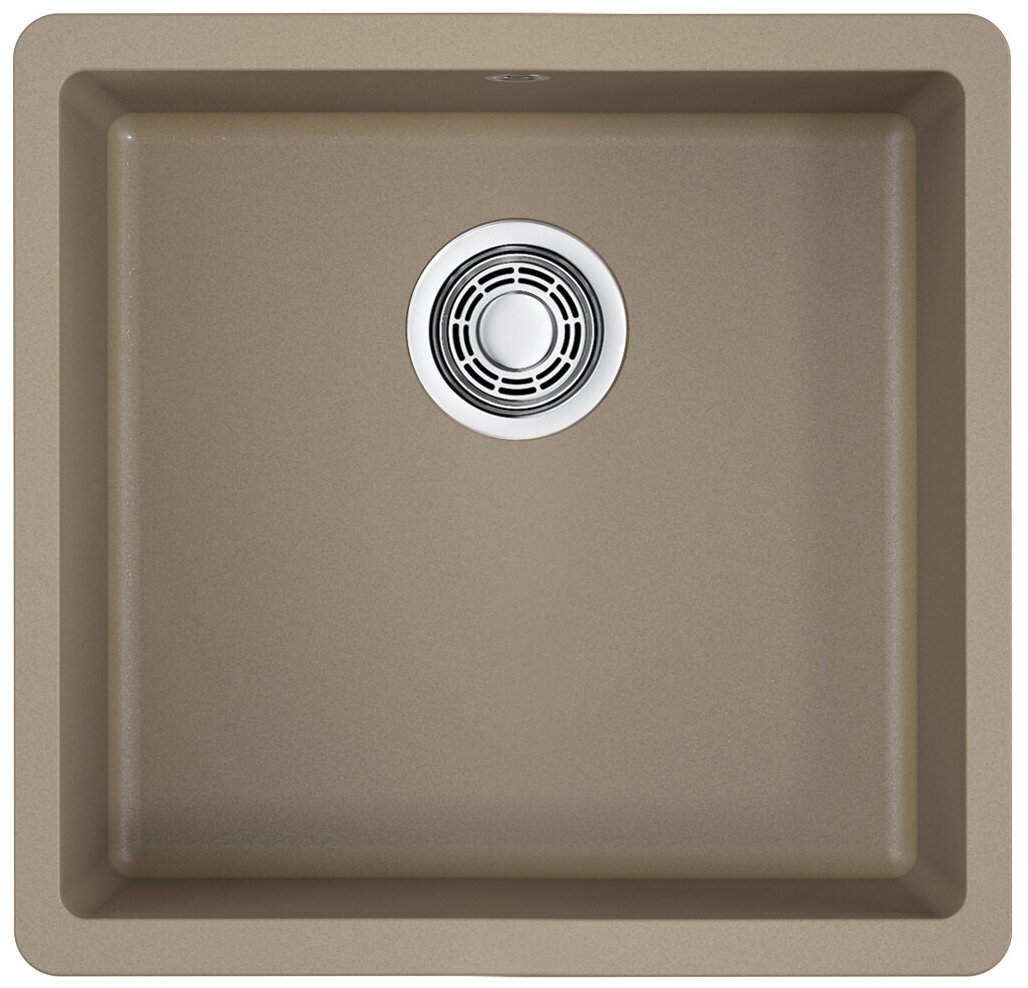 - Кухонная мойка изготовлена из матриала «Artgranit», технология производства которого заключается в том, что частицы кварца, гранита и прочного связующего полимера нового поколения, свойства которого похожи на акриловую смолу, соединяют вместе и помещают в форму. После застывания получается готовая мойка;