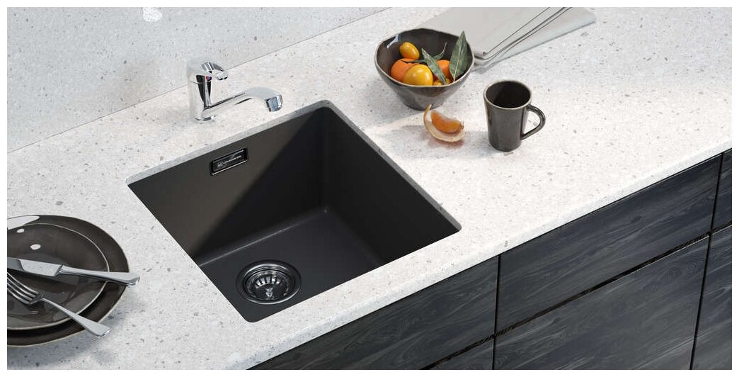 - Помимо гранита, в состав материала входит молотый кварц мельчайших размеров, которому характерны непревзойденная прочность и устойчивость к природным и химическим воздействиям. Свойства данного компонента вместе с долговечностью гранита обеспечивают мойке прочность и делают её устойчивой к любым механическим повреждениям: деформациям, сколам;