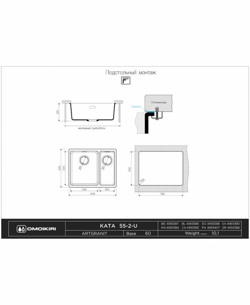 Скачать документы для Мойка Omoikiri Kata 55-2-U-BE ваниль (4993387)