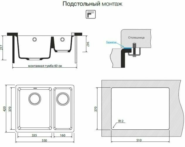 - Материал «Artgranit» выдерживает высокие температуры до 280°С (но не стоит ставить на поверхность мойки горячие сковородки и кастрюли, т.к их температура может достигать 500°С).