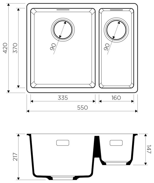 - Помимо гранита, в состав материала входит молотый кварц мельчайших размеров, которому характерны непревзойденная прочность и устойчивость к природным и химическим воздействиям. Свойства данного компонента вместе с долговечностью гранита обеспечивают мойке прочность и делают её устойчивой к любым механическим повреждениям: деформациям, сколам;