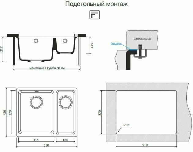 монтаж под столешницу
