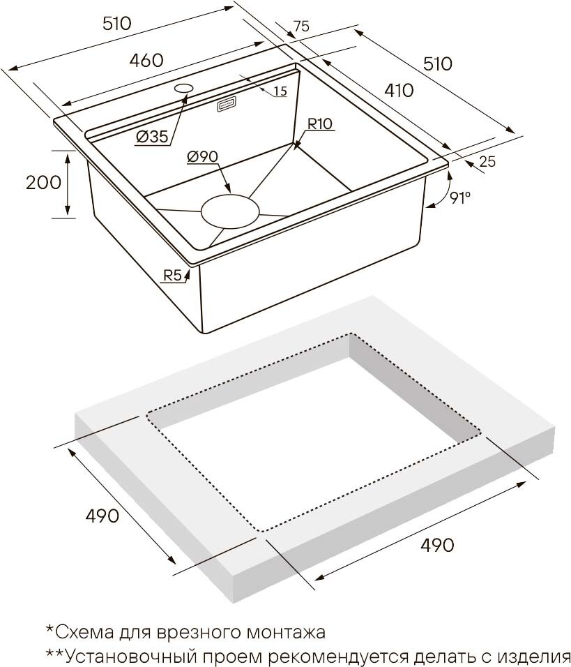корзинчатый вентиль, отверстие под кран-фильтр, отверстие под смеситель, сливная арматура