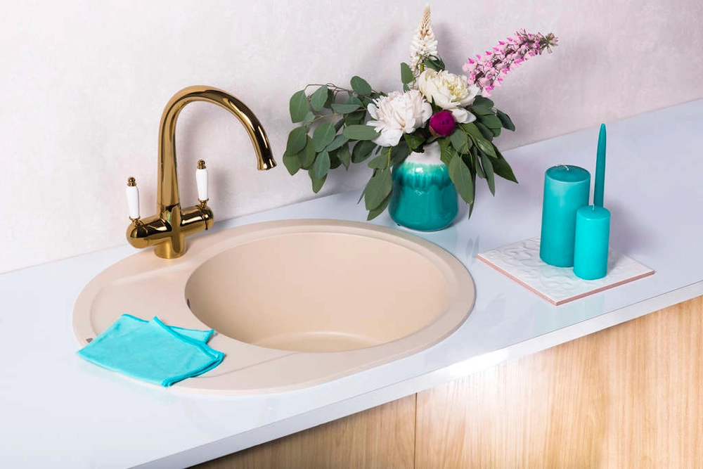 - Помимо гранита, в состав материала входит молотый кварц мельчайших размеров, которому характерны непревзойденная прочность и устойчивость к природным и химическим воздействиям. Свойства данного компонента вместе с долговечностью гранита обеспечивают мойке прочность и делают её устойчивой к любым механическим повреждениям: деформациям, сколам;