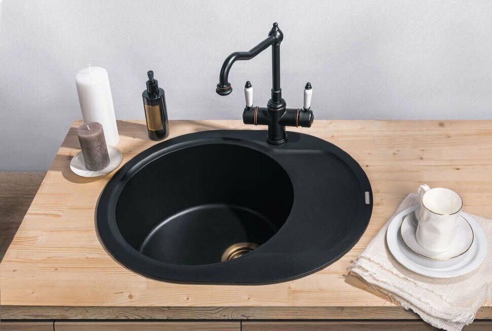- Помимо гранита, в состав материала входит молотый кварц мельчайших размеров, которому характерны непревзойденная прочность и устойчивость к природным и химическим воздействиям. Свойства данного компонента вместе с долговечностью гранита обеспечивают мойке прочность и делают её устойчивой к любым механическим повреждениям: деформациям, сколам;