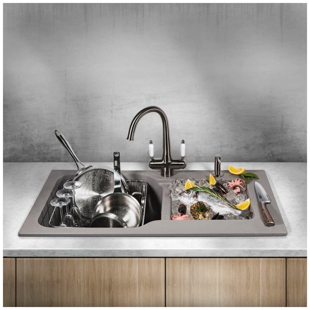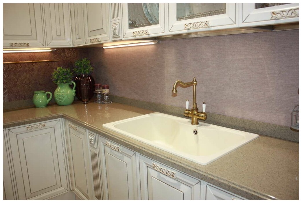 - Материал выдерживает высокие температуры до 280°С (но не стоит ставить на поверхность мойки горячие сковородки и кастрюли, т.к их температура может достигать 500°С).