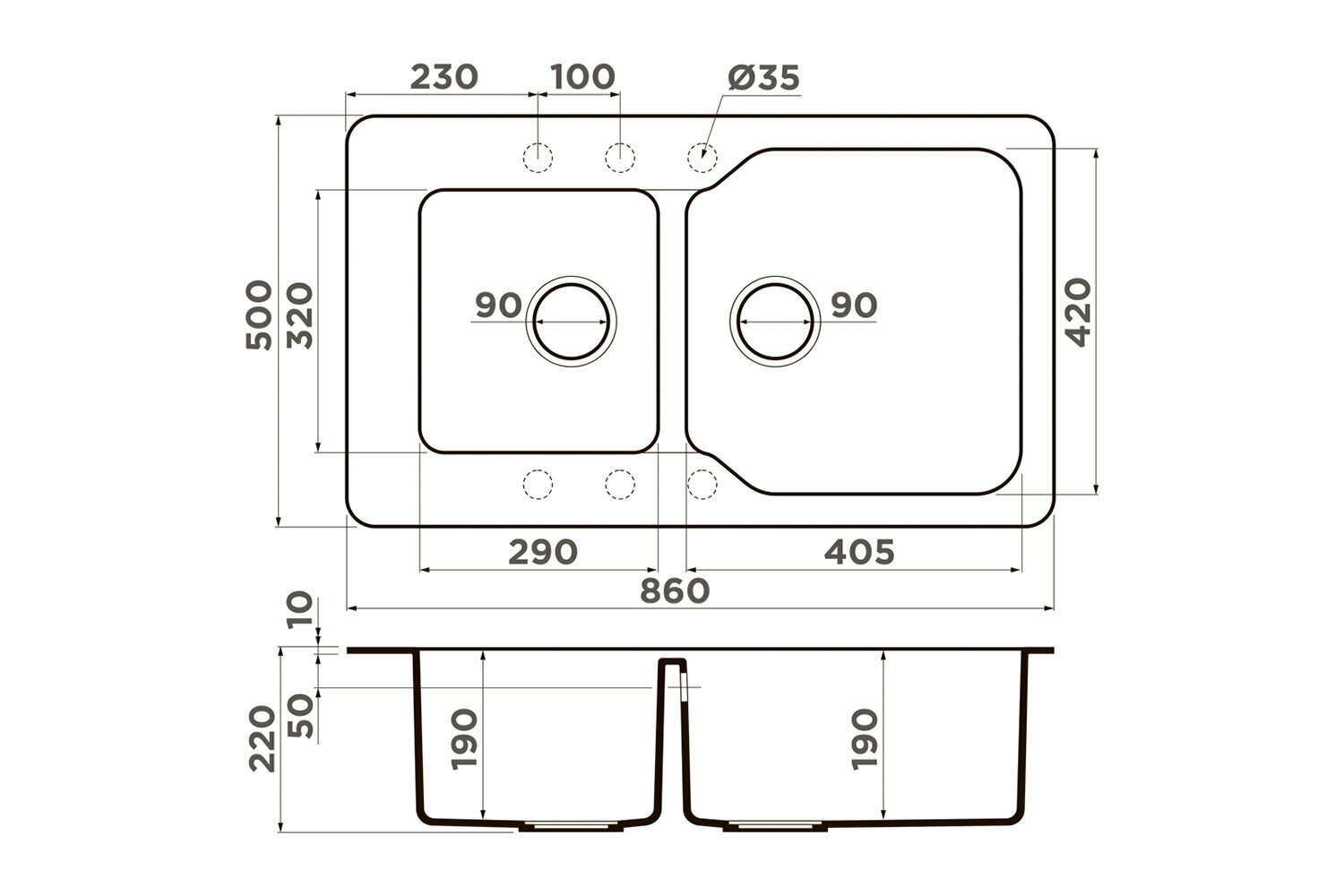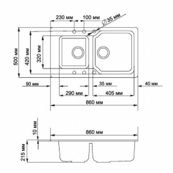 дополнительная чаша, две чаши, дополнительная чаша,отверстие под смеситель,сливная арматура,клапан-автомат, клапан-автомат, корзинчатый вентиль, отверстие под смеситель, сливная арматура