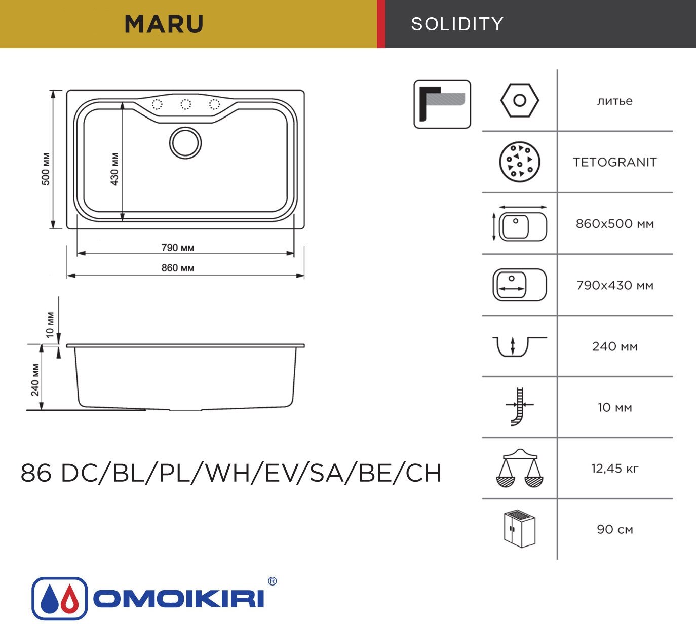 Скачать документы для Мойка Omoikiri Maru 86-CH Tetogranit/шампань 4993242