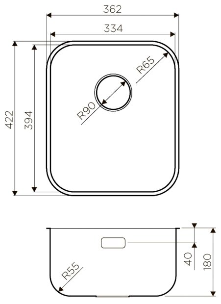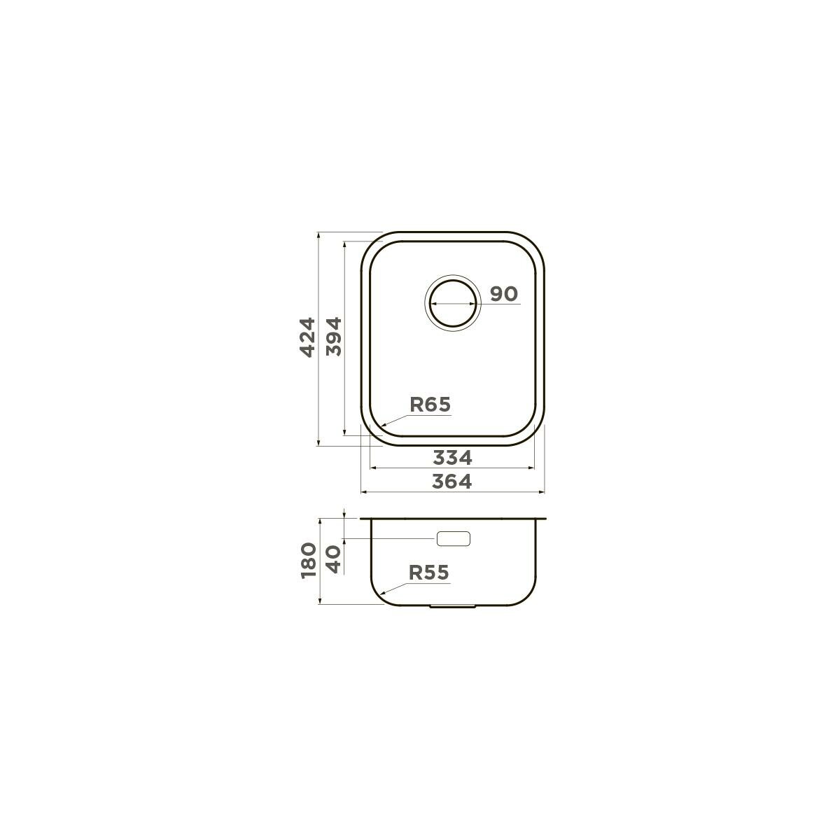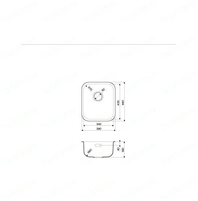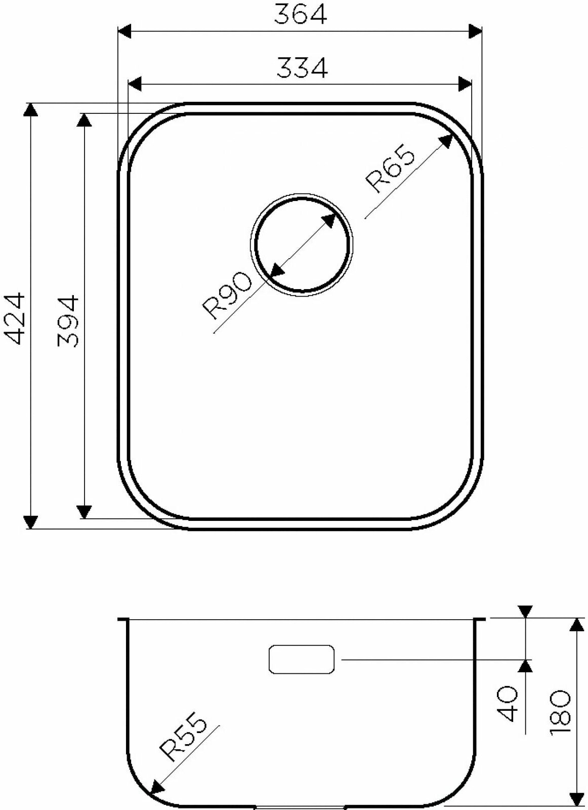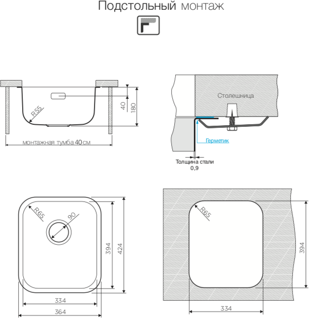 вырез под подстольный монтаж: 334 х 394 мм, вырез под врезной монтаж: 344 х 404 мм; размер монтажной тумбы: 40 см; толщина металла 0.8 мм; диаметр сливного отверстия 90 мм; вес: 2,91 кг; гарантия: 15 лет; комплектация: крепления для монтажа, донный клапан, сифон, слив-перелив; материал: хромоникелевая нержавеющая сталь
