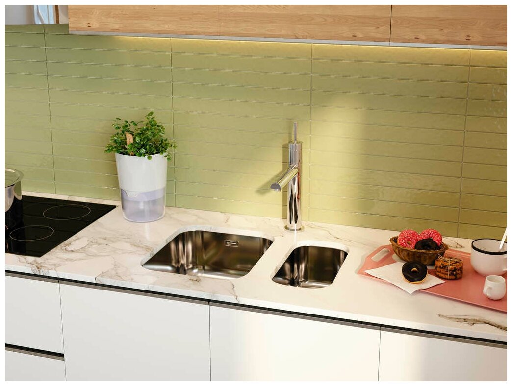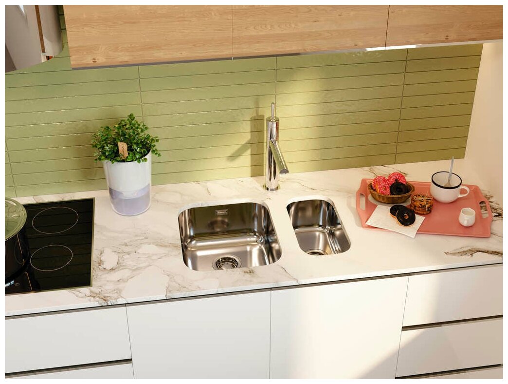 - Кухонная мойка изготовлена из высококачественной хромоникелевой нержавеющей стали SUS304. Она содержит 18% хрома и 8% никеля, что обеспечивает её максимальную защиту от коррозии;