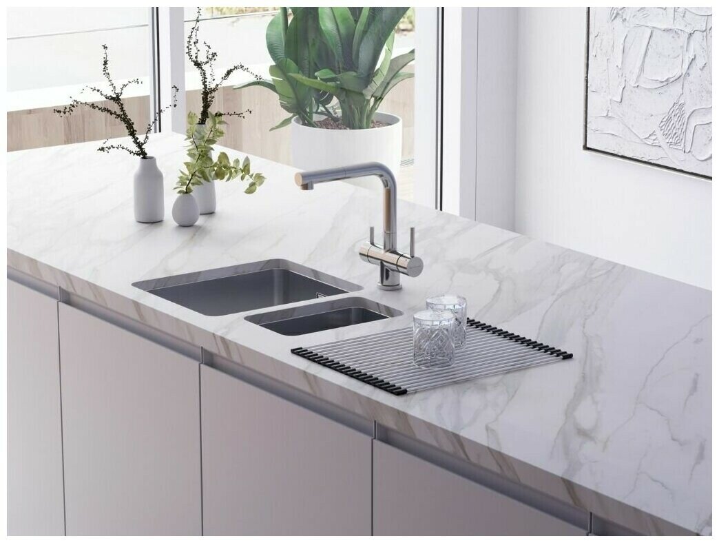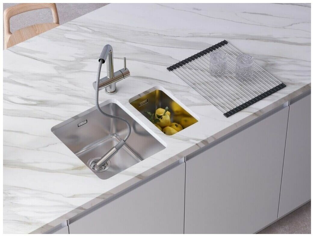 - Кухонная мойка изготовлена из высококачественной хромоникелевой нержавеющей стали SUS304. Она содержит 18% хрома и 8% никеля, что обеспечивает её максимальную защиту от коррозии;