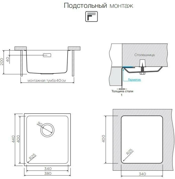 клапан-автомат, корзинчатый вентиль, отверстие под смеситель, сливная арматура, документация, мойка
