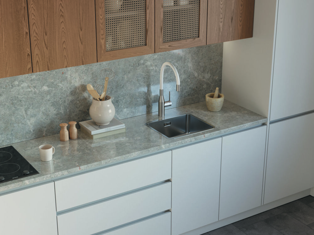 - Кухонная мойка изготовлена из высококачественной хромоникелевой нержавеющей стали SUS304. Она содержит 18% хрома и 8% никеля, что обеспечивает её максимальную защиту от коррозии;