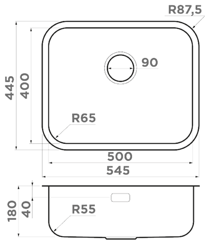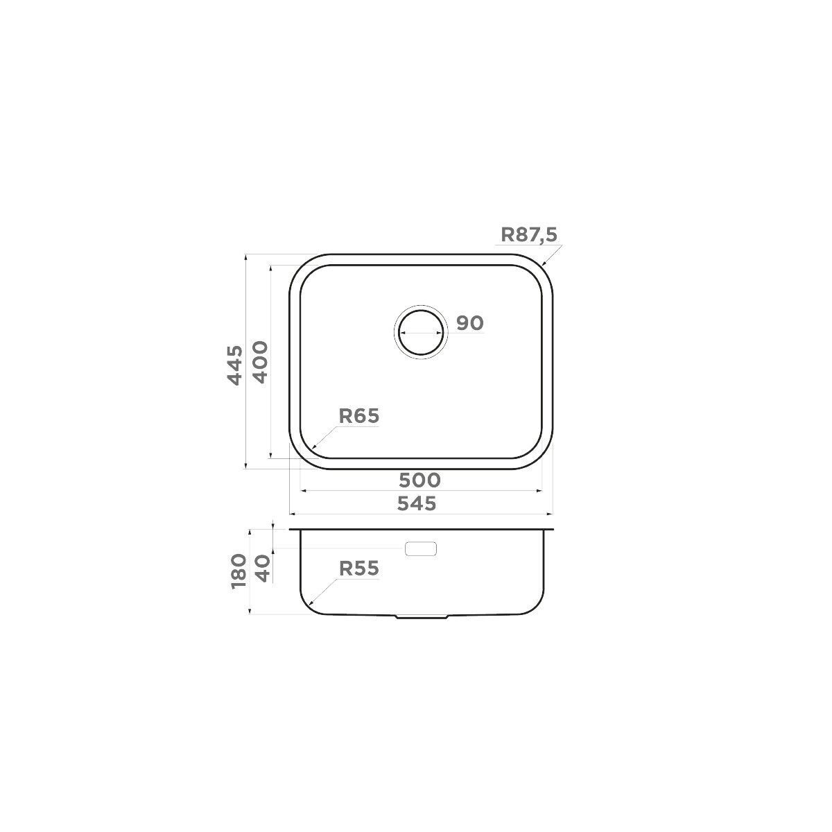 три варианта установки (монтаж вровень со столешницей, монтаж сверху на столешницу, монтаж под столешницу), толщина металла 0.8 мм, диаметр сливного отверстия 90 мм