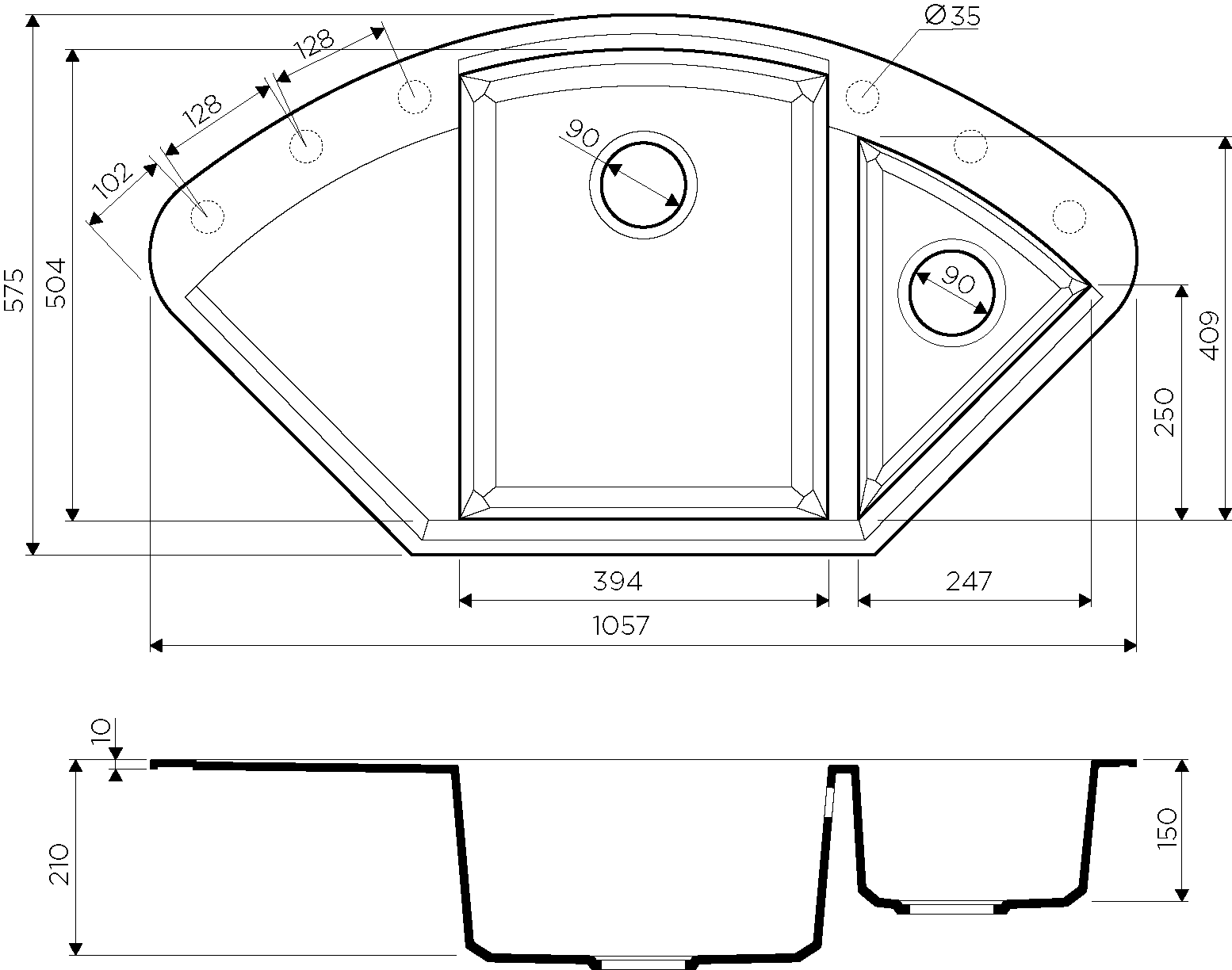 дополнительная чаша, угловая, дополнительная чаша,отверстие под смеситель,сливная арматура,угловая,клапан-автомат, клапан-автомат, отверстие под смеситель, сливная арматура