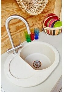 - Материал выдерживает высокие температуры до 280°С (но не стоит ставить на поверхность мойки горячие сковородки и кастрюли, т.к их температура может достигать 500°С).