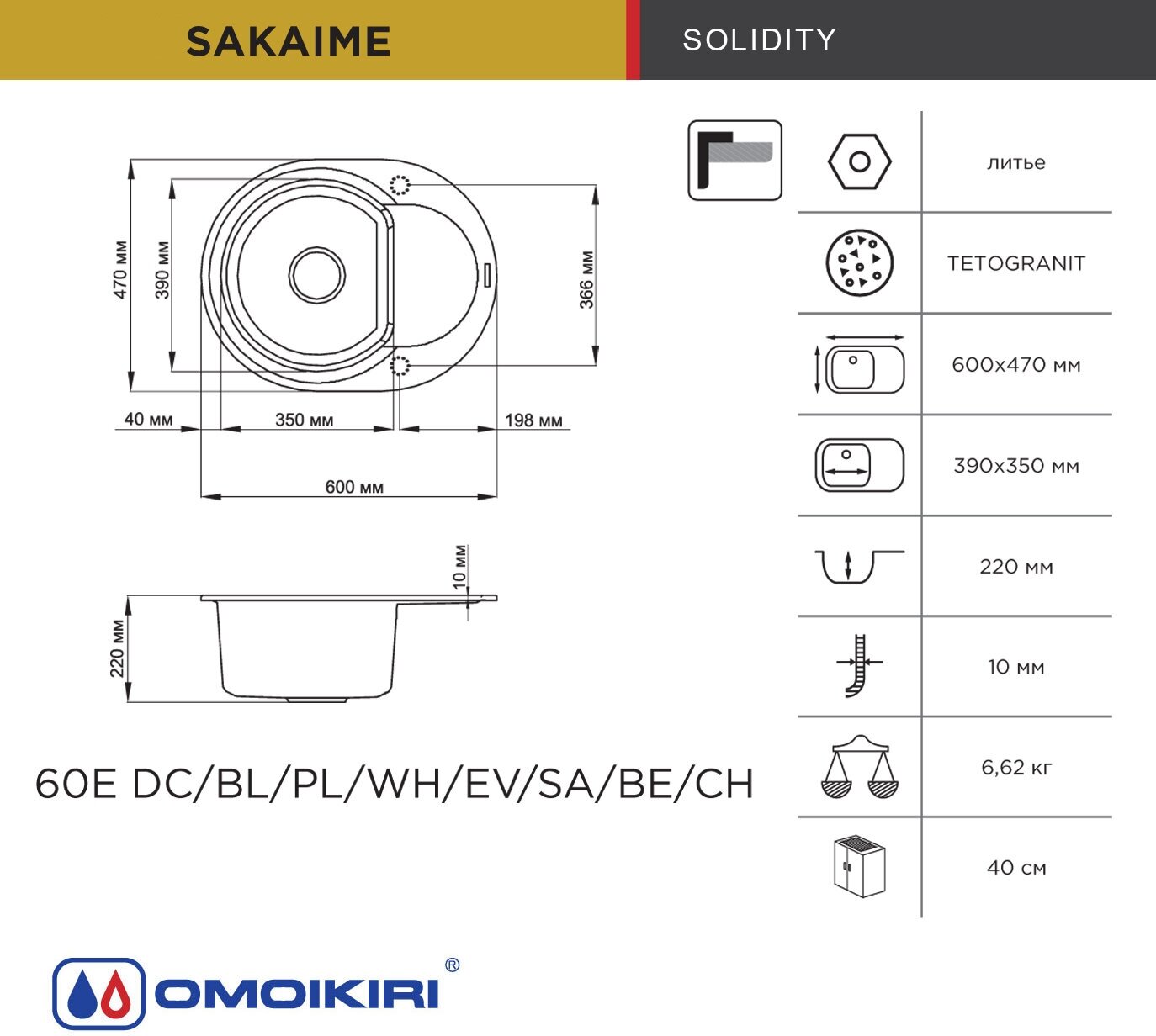 Скачать документы для Мойка Omoikiri Sakaime 60E-DC темный шоколад (4993205)