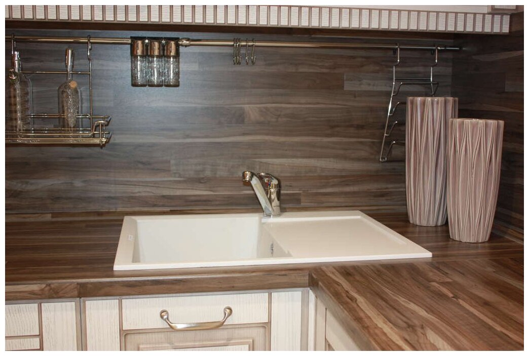 - Материал выдерживает высокие температуры до 280°С (но не стоит ставить на поверхность мойки горячие сковородки и кастрюли, т.к их температура может достигать 500°С).
