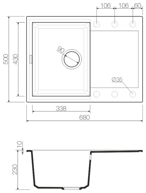 - Материал выдерживает высокие температуры до 280°С (но не стоит ставить на поверхность мойки горячие сковородки и кастрюли, т.к их температура может достигать 500°С).