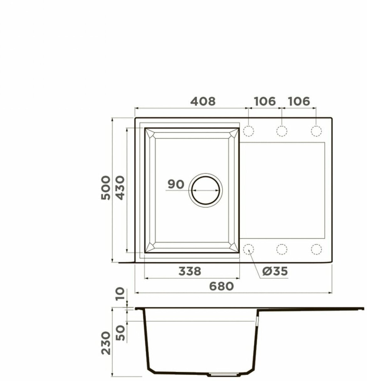 Ширина мойки
