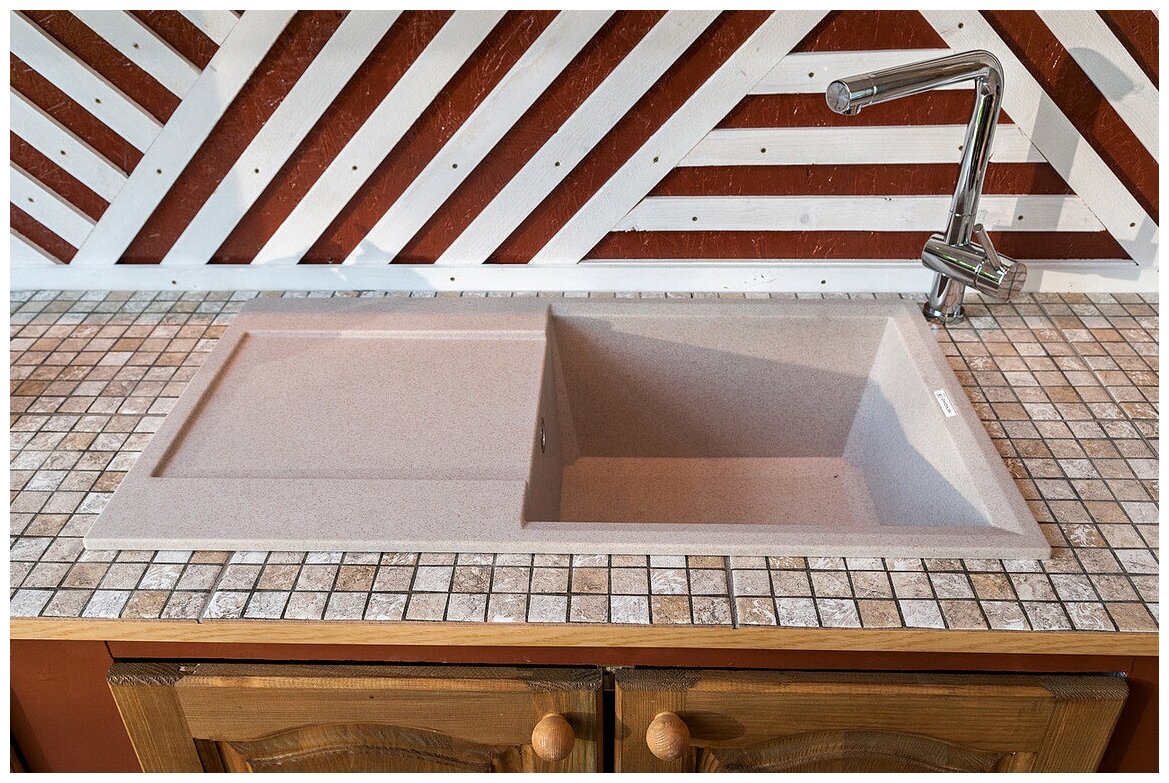 - Материал выдерживает высокие температуры до 280°С (но не стоит ставить на поверхность мойки горячие сковородки и кастрюли, т.к их температура может достигать 500°С).