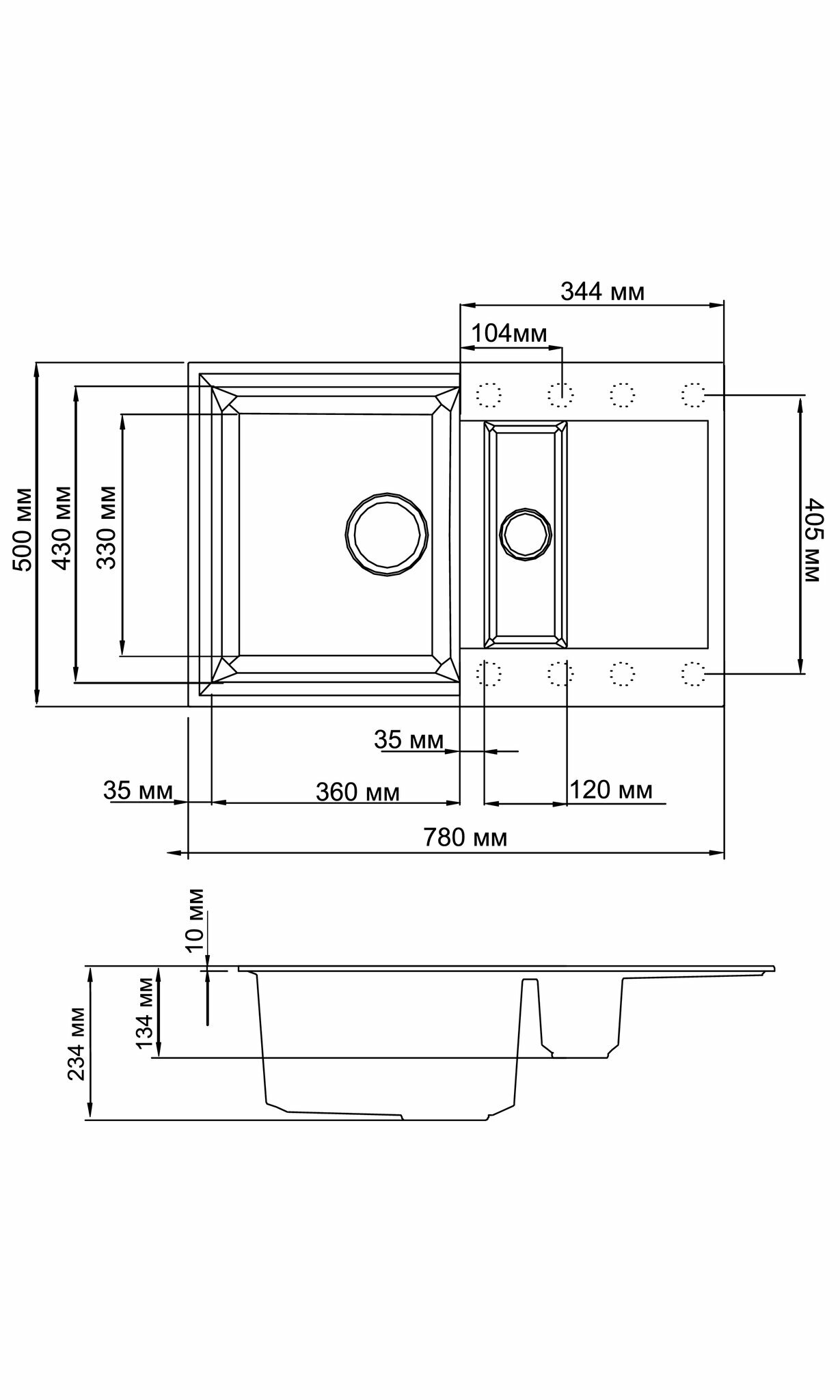 Ширина мойки