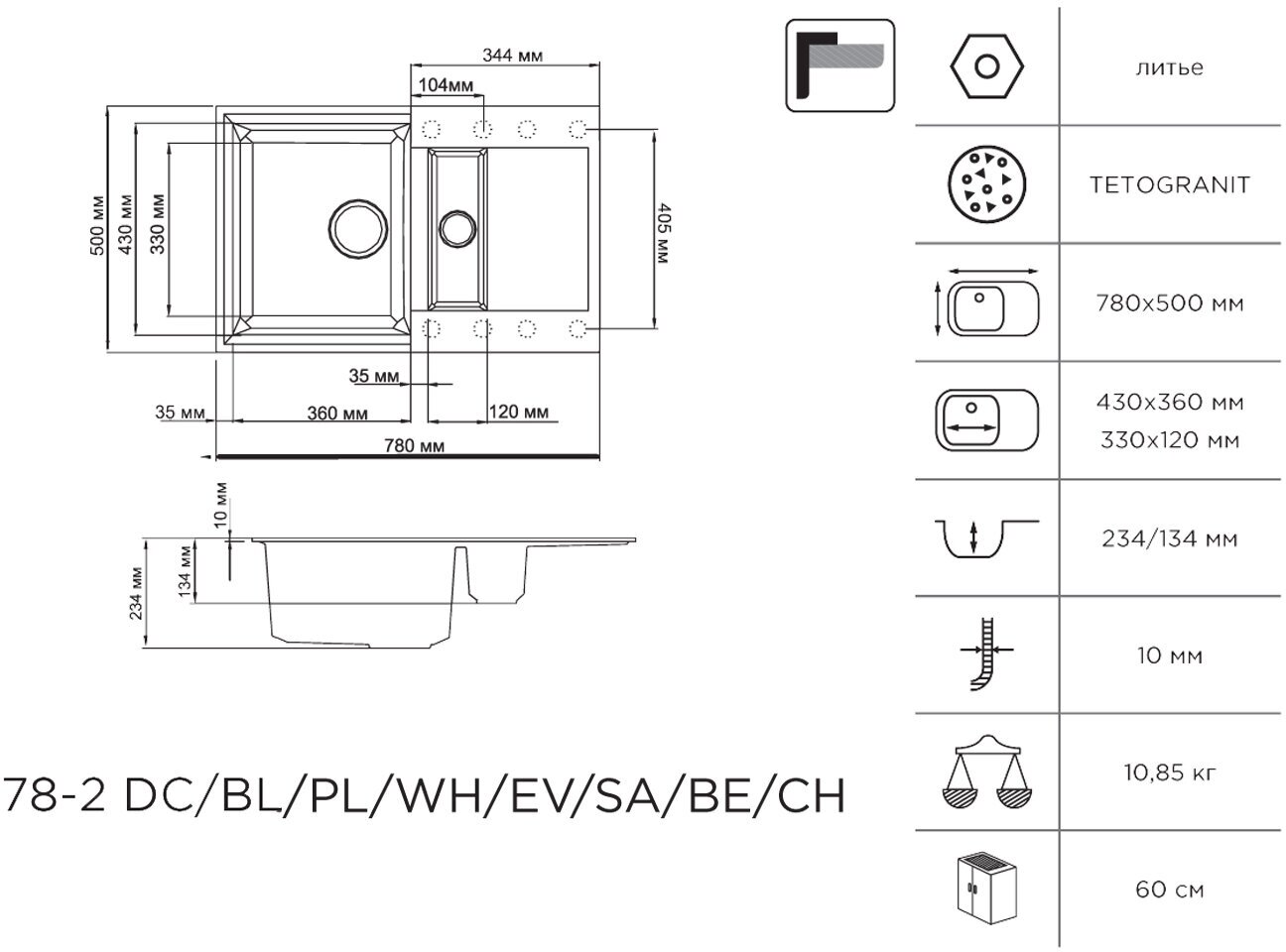 - За счет окрашивания каждой частицы гранитного материала при помощи специальной технологии, первоначальный цвет мойки гарантировано сохраняется в течение всего срока службы;