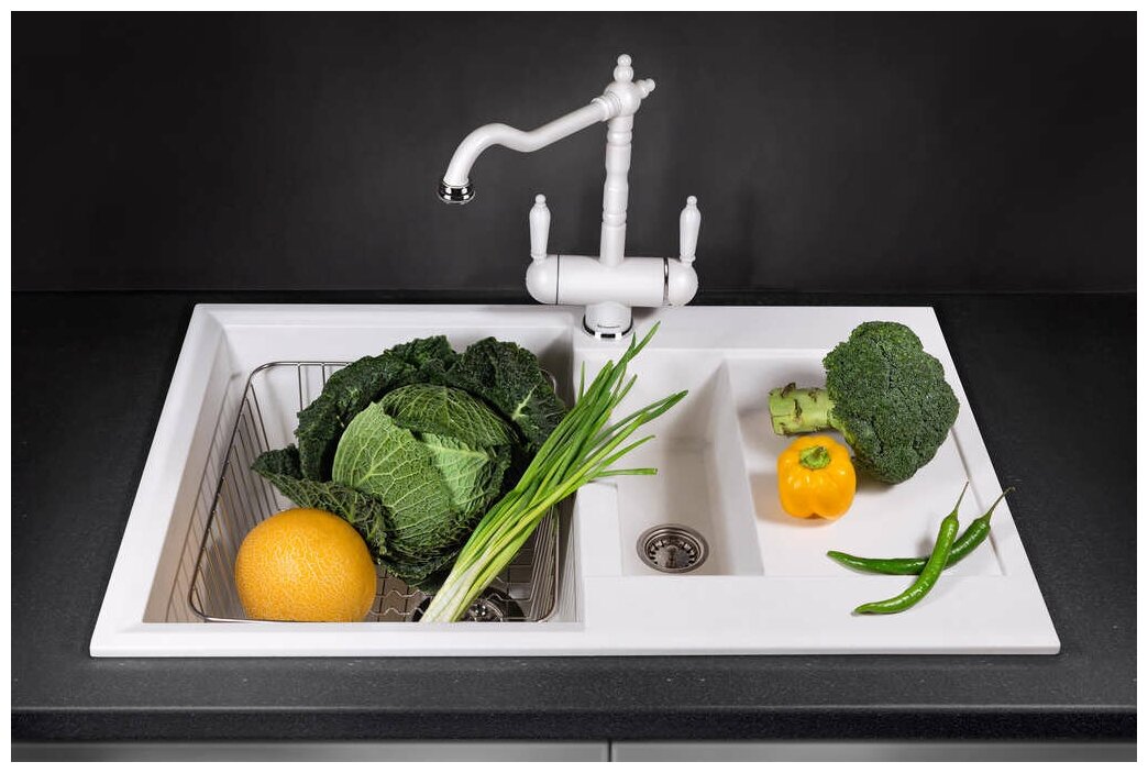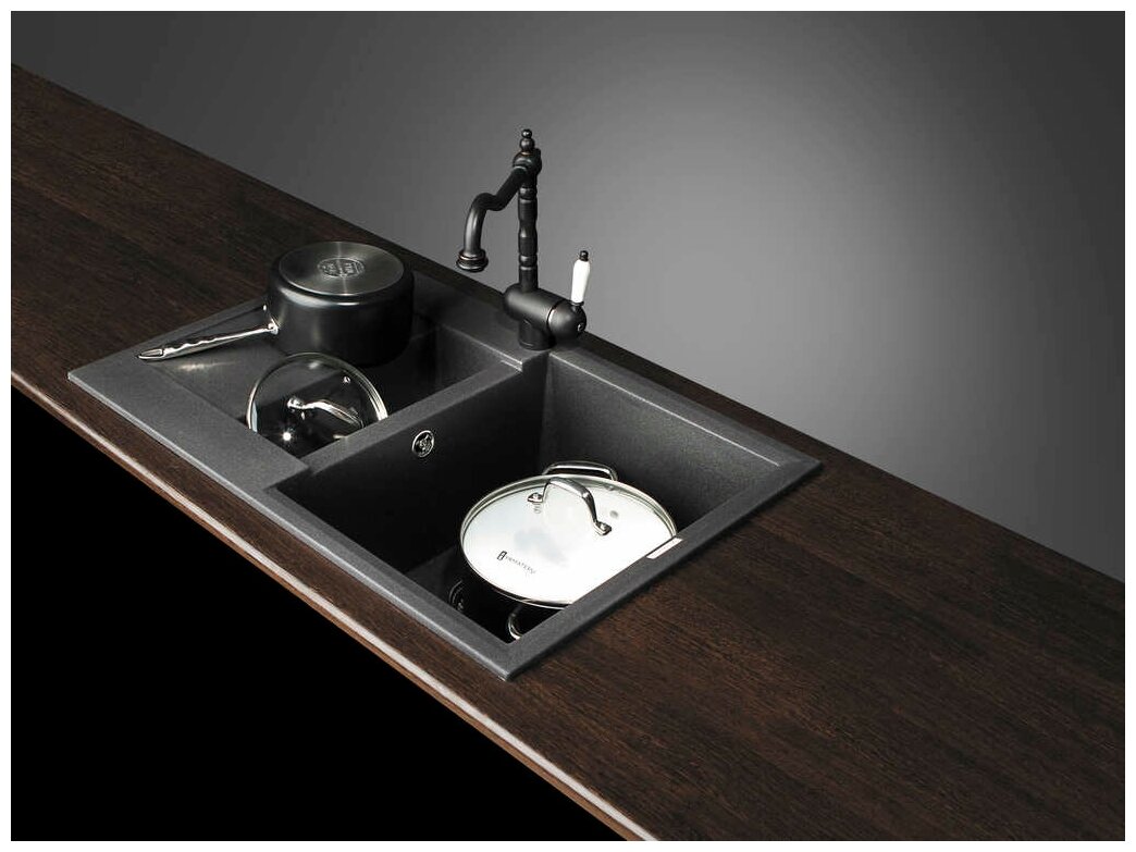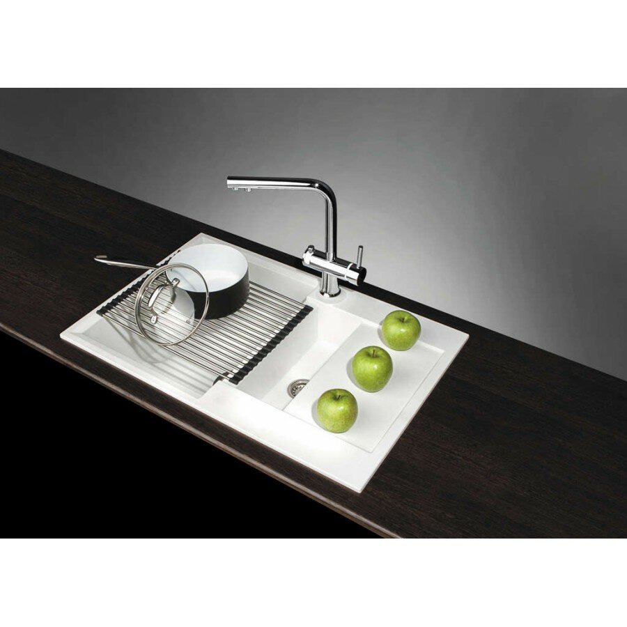 - Материал выдерживает высокие температуры до 280°С (но не стоит ставить на поверхность мойки горячие сковородки и кастрюли, т.к их температура может достигать 500°С).