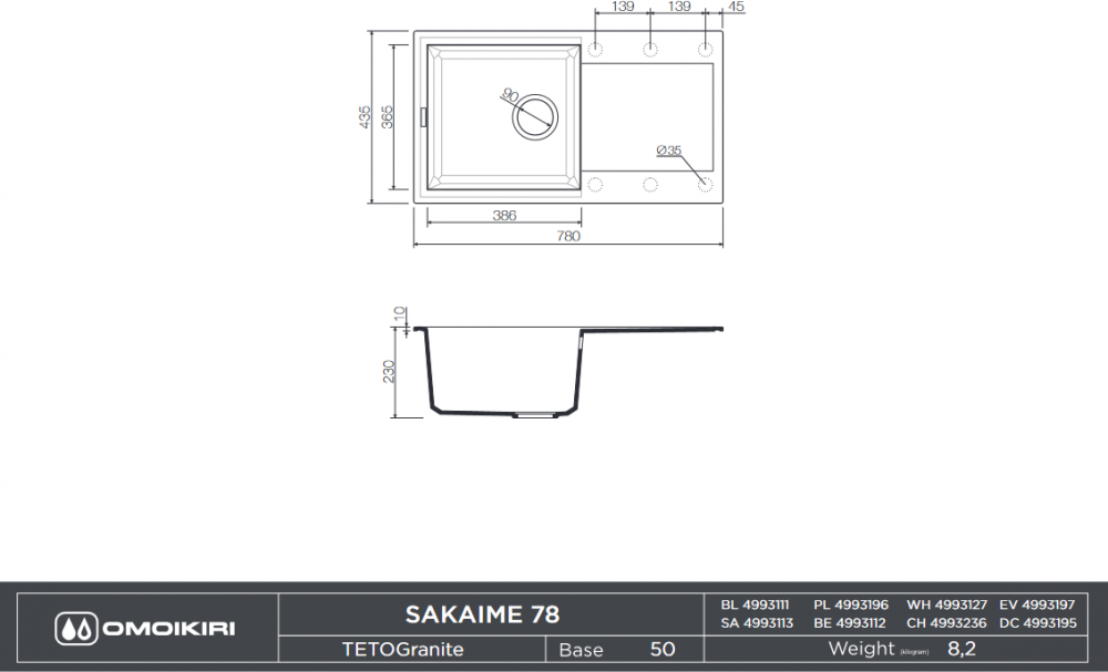 Скачать документы для Мойка Omoikiri Sakaime 78-BE ваниль (4993112)