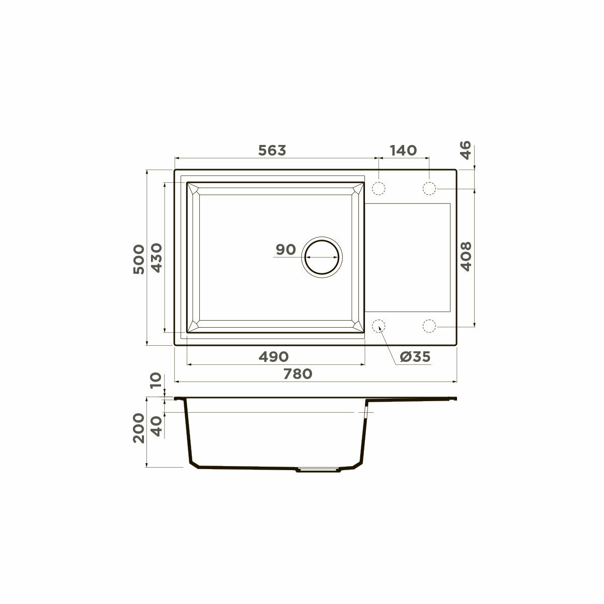 - Материал выдерживает высокие температуры до 280°С (но не стоит ставить на поверхность мойки горячие сковородки и кастрюли, т.к их температура может достигать 500°С).