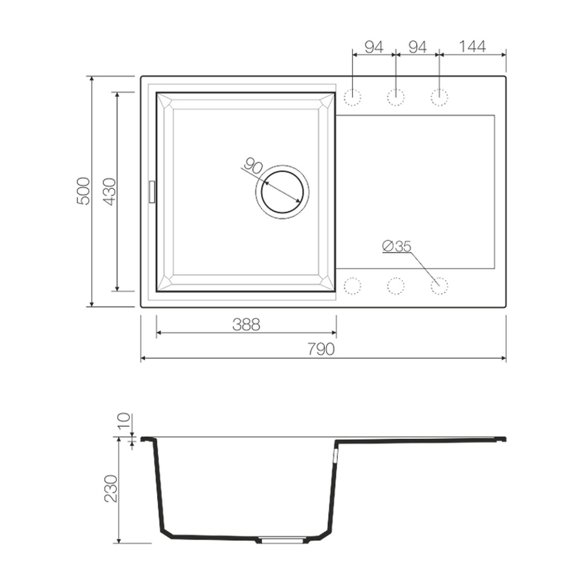 Ширина мойки
