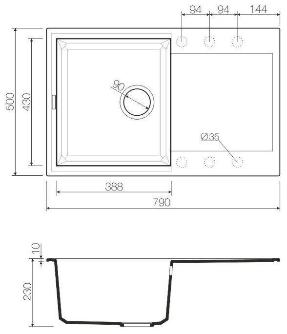 - Материал выдерживает высокие температуры до 280°С (но не стоит ставить на поверхность мойки горячие сковородки и кастрюли, т.к их температура может достигать 500°С).