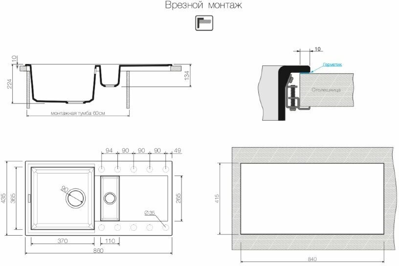 врезная, накладная, Встраиваемая сверху, врезная на столешницу